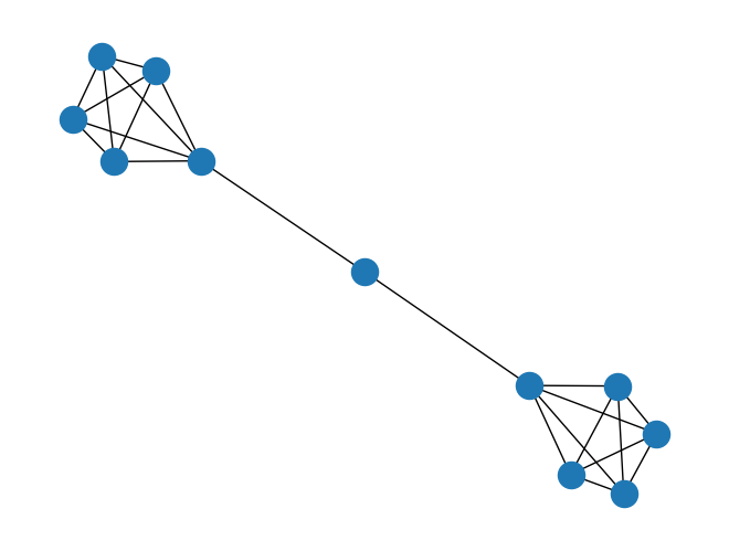 El nodo 5 tiene centralidad: 0.5555555555555556