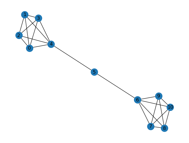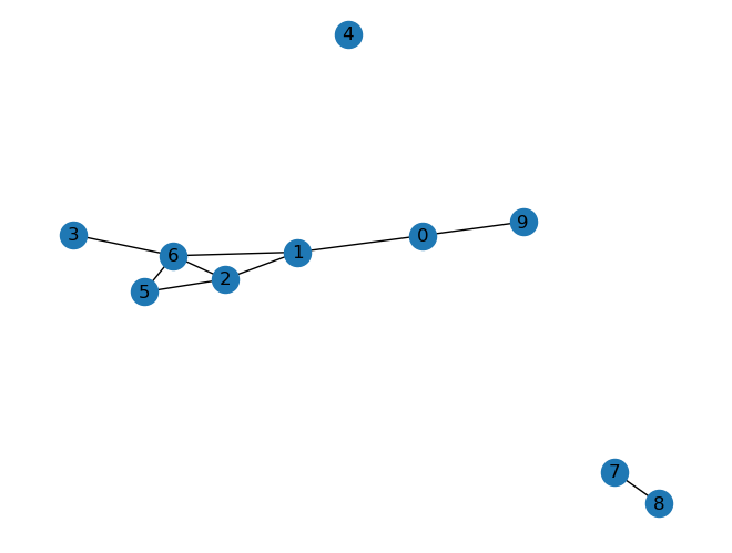 UndirectedG = DiG.to_undirected()nx.draw(UndirectedG, with_labels=True)