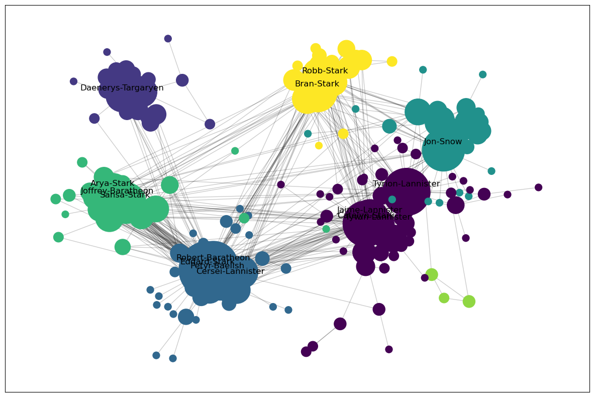 Encuentre el nodo más importante en cada partición/comunidad según su centralidad de grado (HINT: use la centralidad normalizada, por qué?).
