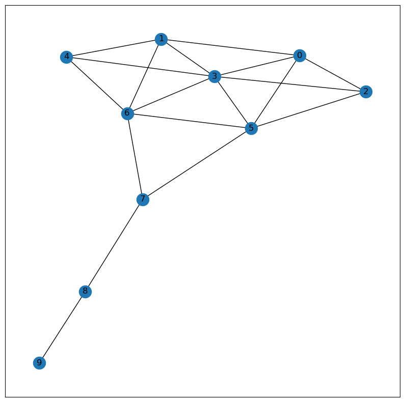 G = nx.krackhardt_kite_graph()Nota: En teoría de grafos, el grafo de cometas de Krackhardt es un grafo simple con diez nodos. El grafo lleva el nombre de David Krackhardt, un investigador de la teoría de redes sociales.